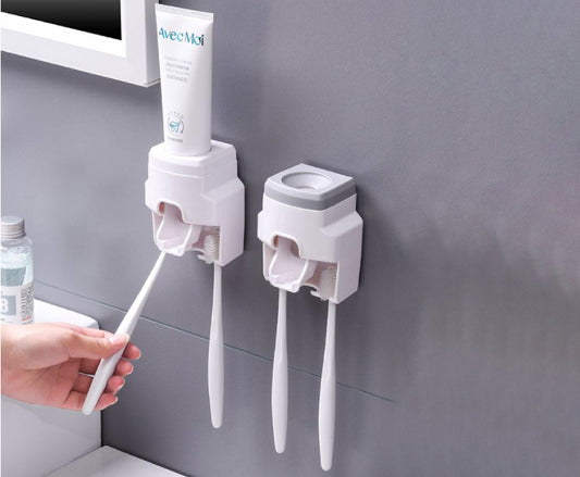 Distributeur de dentifrice automatique et support brosse à dents 2 en 1 CleanTech